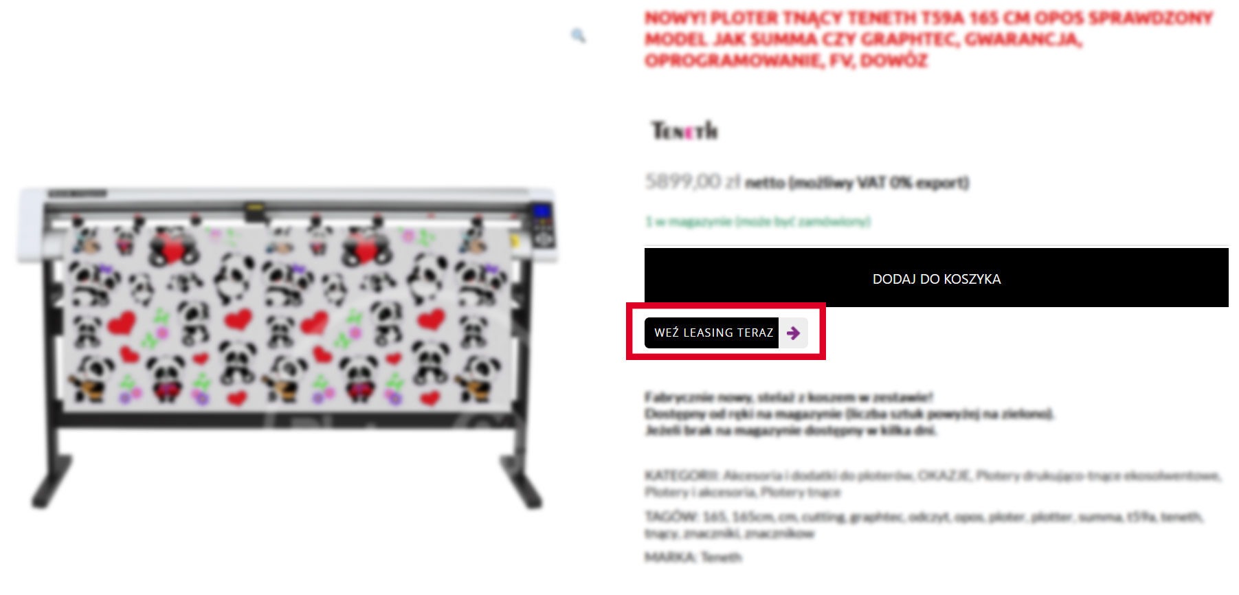 - przy każdym z produktów jest przycisk WEŹ LEASING TERAZ - po jego kliknięciu w nowym oknie otworzy się formularz LeaseLink.pl zawierający już ofertę konkretnego urządzenia