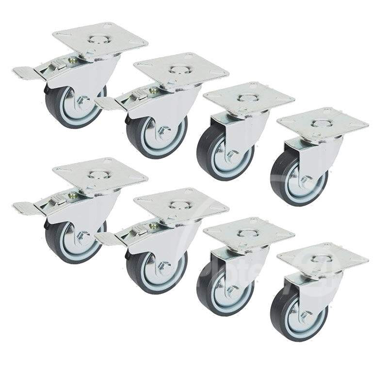 W zestawie 8 obrotowych gumowych kółek fi 50 mm pod 2 nogi (4 kółka z hamulcem i 4 bez hamulca), dzięki czemu stół jest mobilny (można ich nie montować jeśli funkcja mobilności jest zbędna)